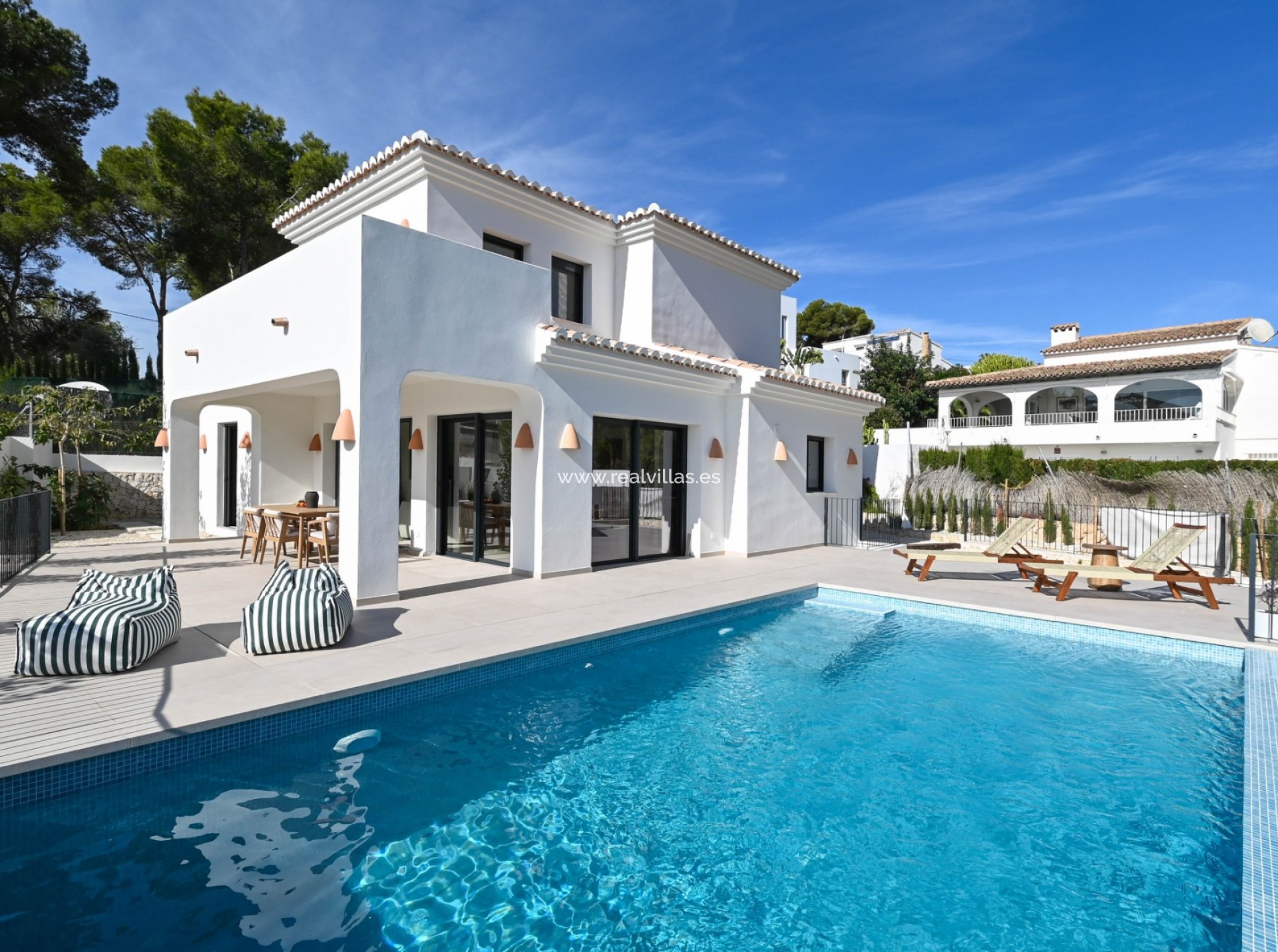 Diese elegante Villa befindet sich im prestigeträchtigen und begehrten Viertel El Portet in Moraira. Nur 1,2 km vom Strand entfernt, ist dieses mediterrane Paradies in 3 Fahrminuten oder 15 Gehminuten erreichbar.