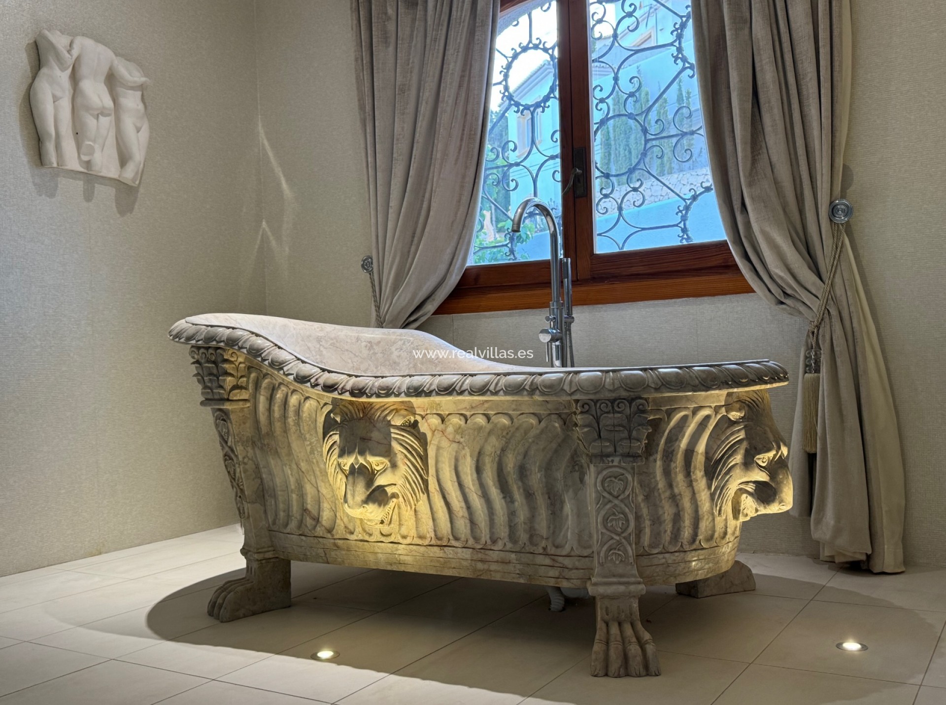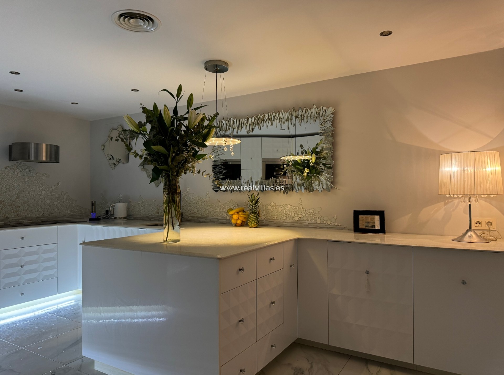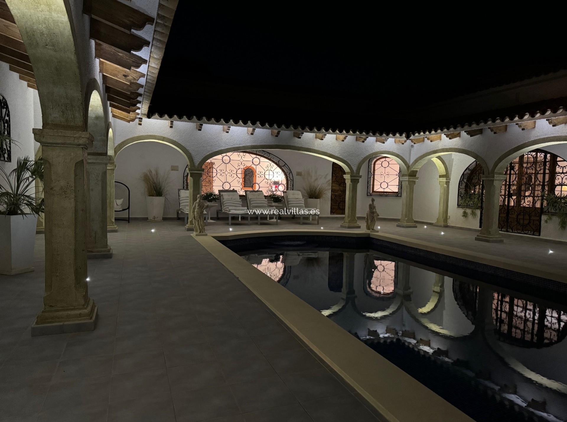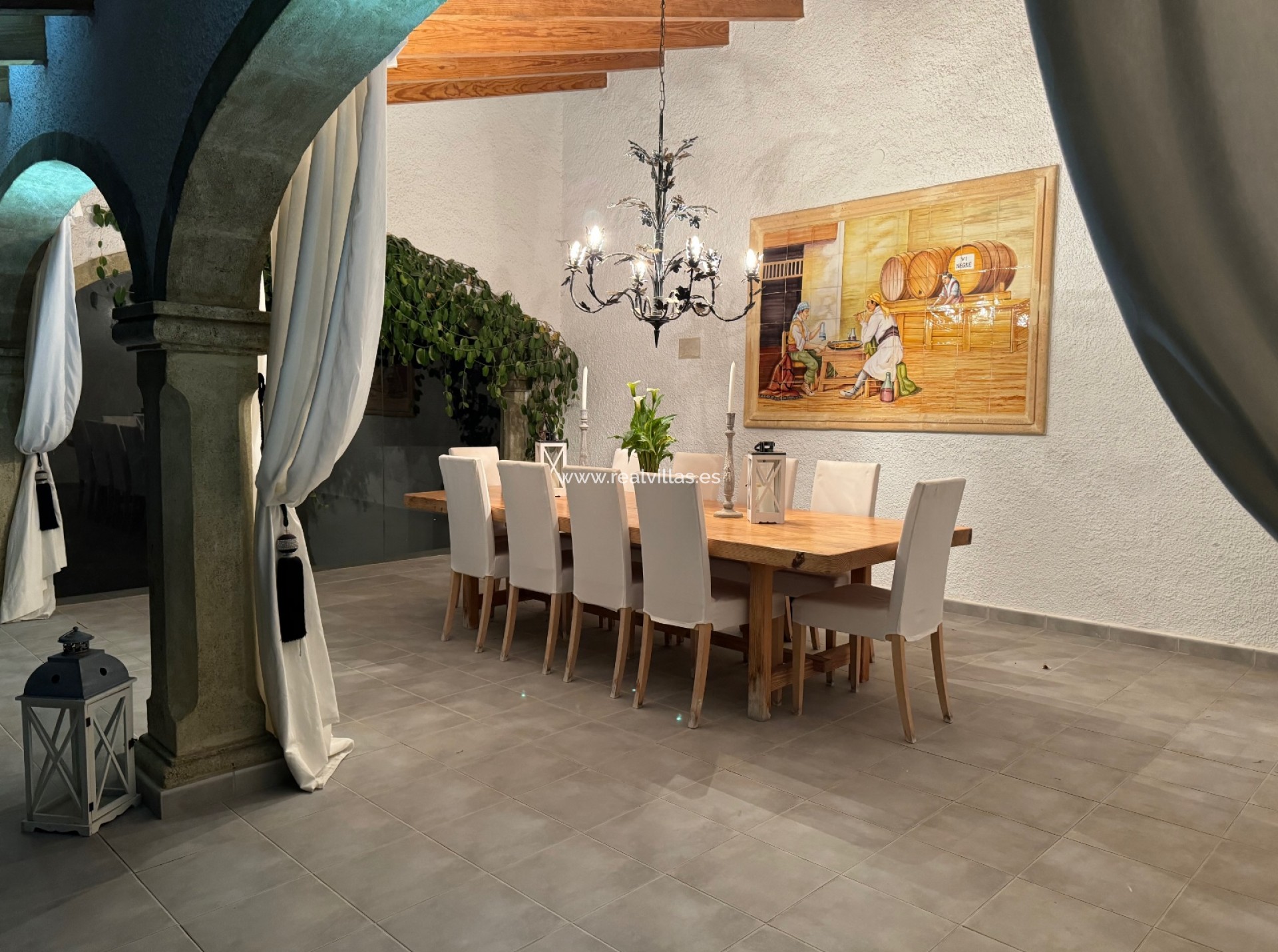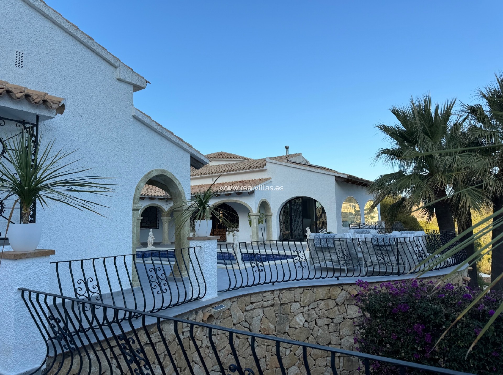 Destaca aquí la cocina exterior decorada con gusto y cerrada, junto con la «naya» cubierta que ofrece espacio para numerosos invitados. Varias zonas de estar y un jacuzzi invitan a la relajación. La villa tiene su propia bodega con un acogedor bar y está equipada con sistema de sonido, aire acondicionado central y paneles solares. También hay dos garajes cerrados y aparcamiento adicional en el sitio.
