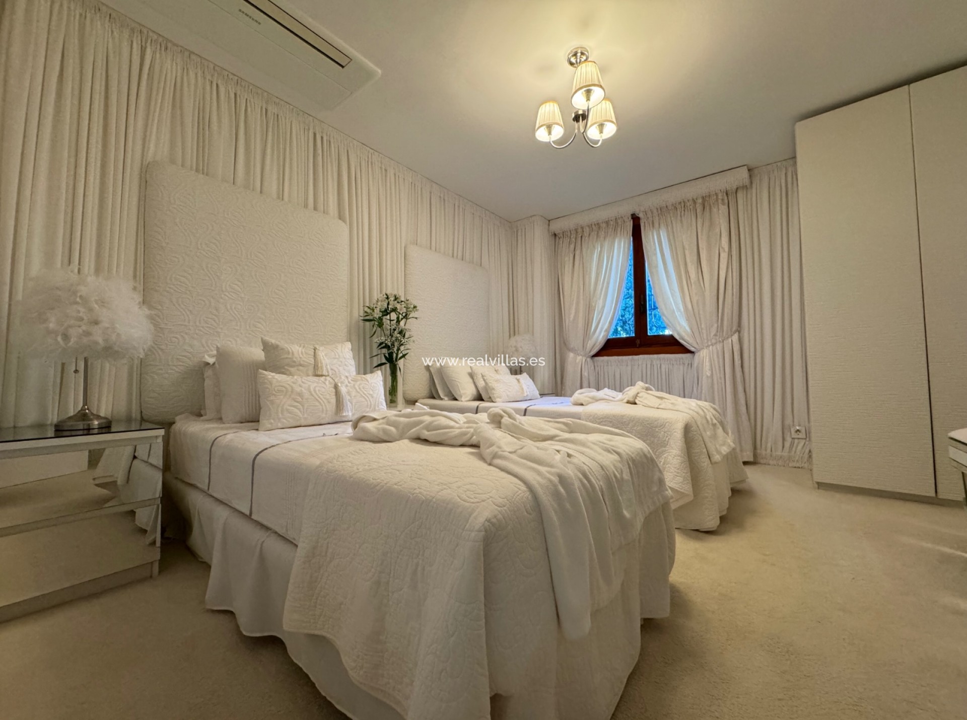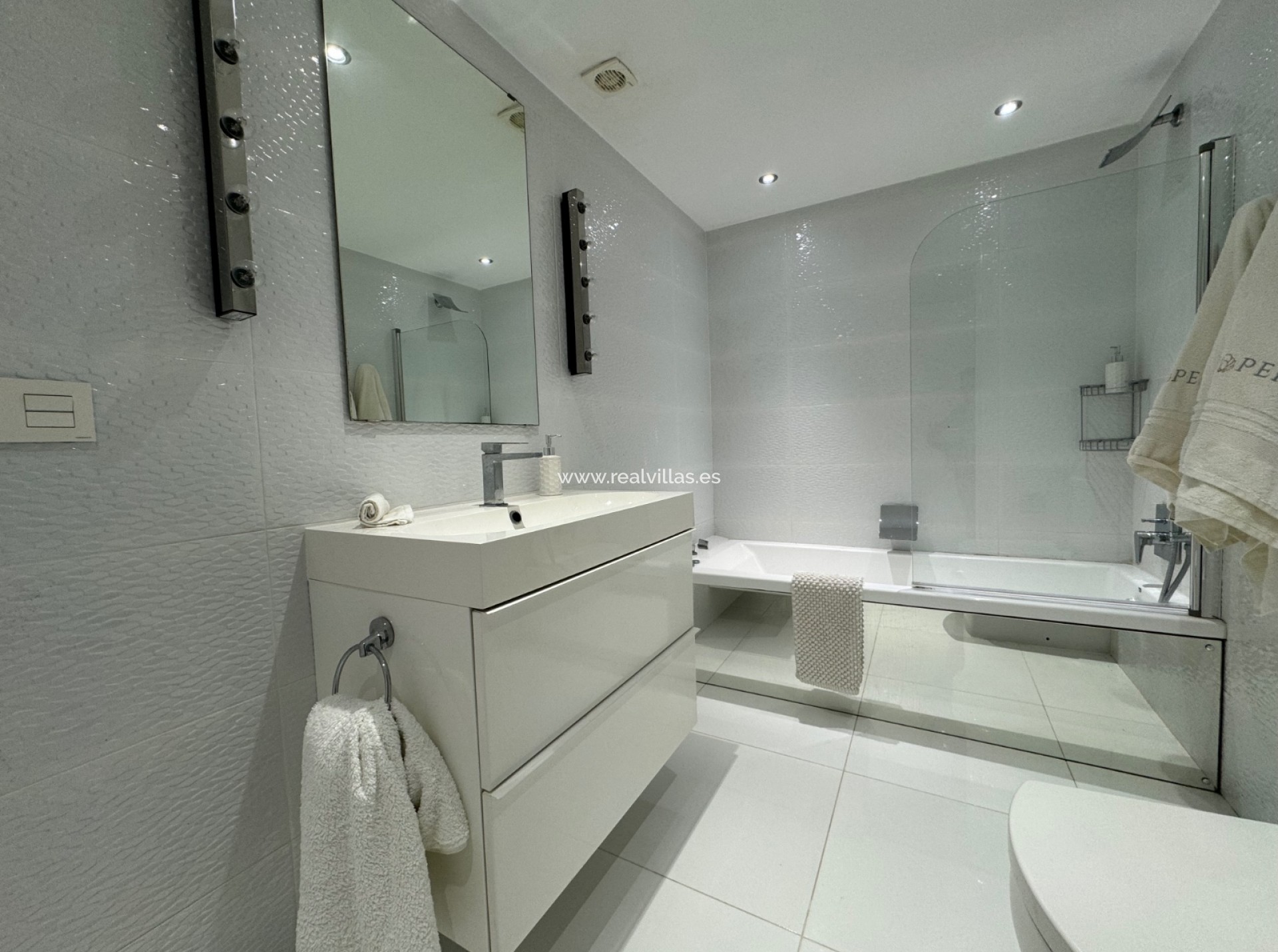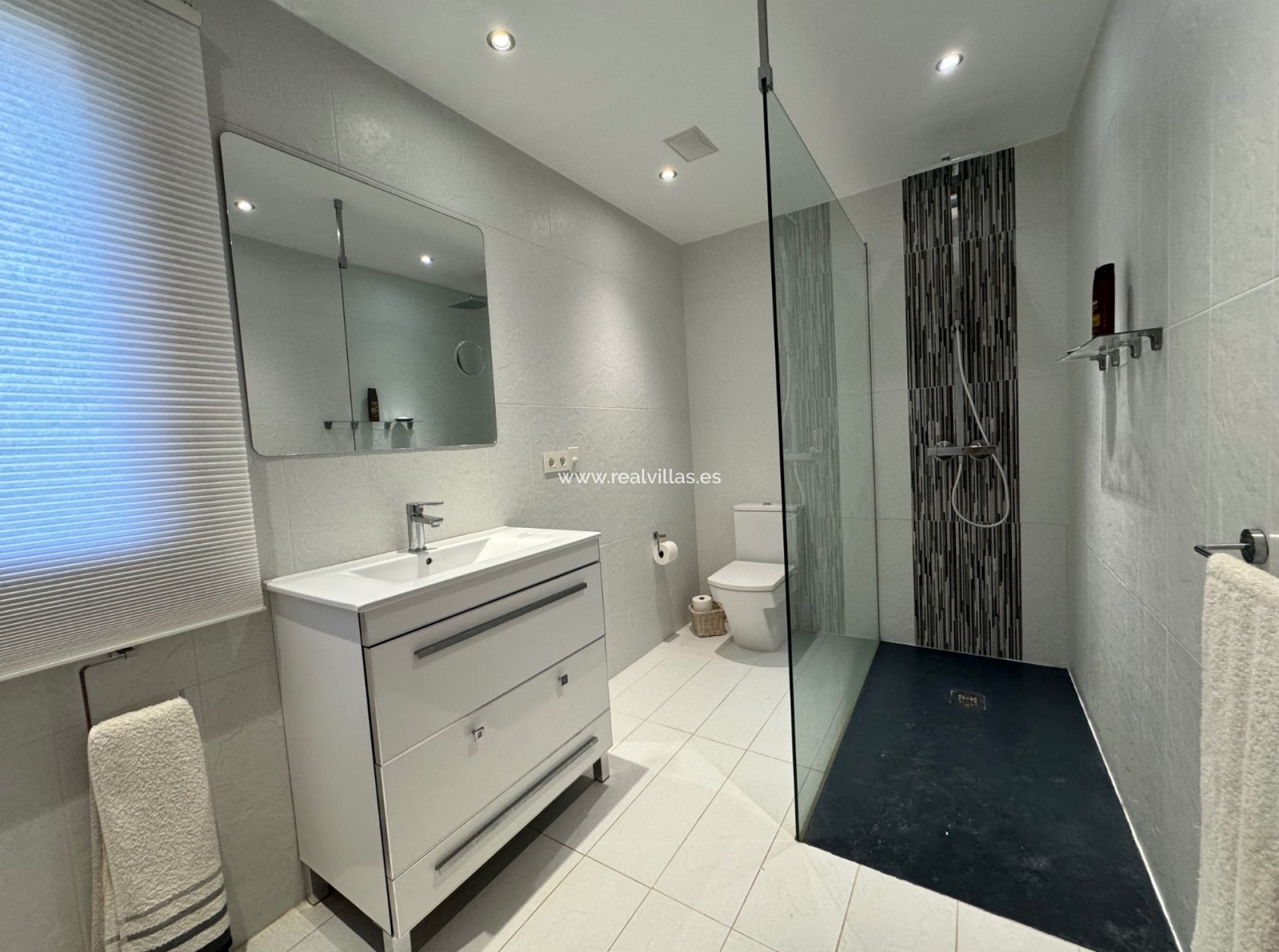 Al entrar a través de la impresionante puerta de entrada de madera en el amplio vestíbulo, que son recibidos por espectaculares vistas de la piscina de ensueño con el hermoso azul del Mediterráneo como telón de fondo. El nivel ofrece un dormitorio en suite y una suite principal independiente con generoso vestidor, baño y dormitorio con acceso directo a la fantástica terraza junto a la piscina.