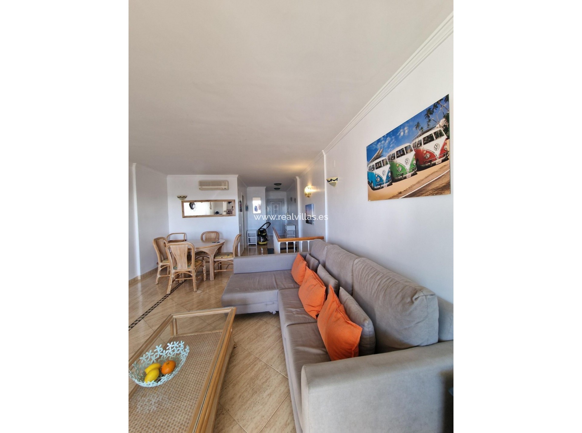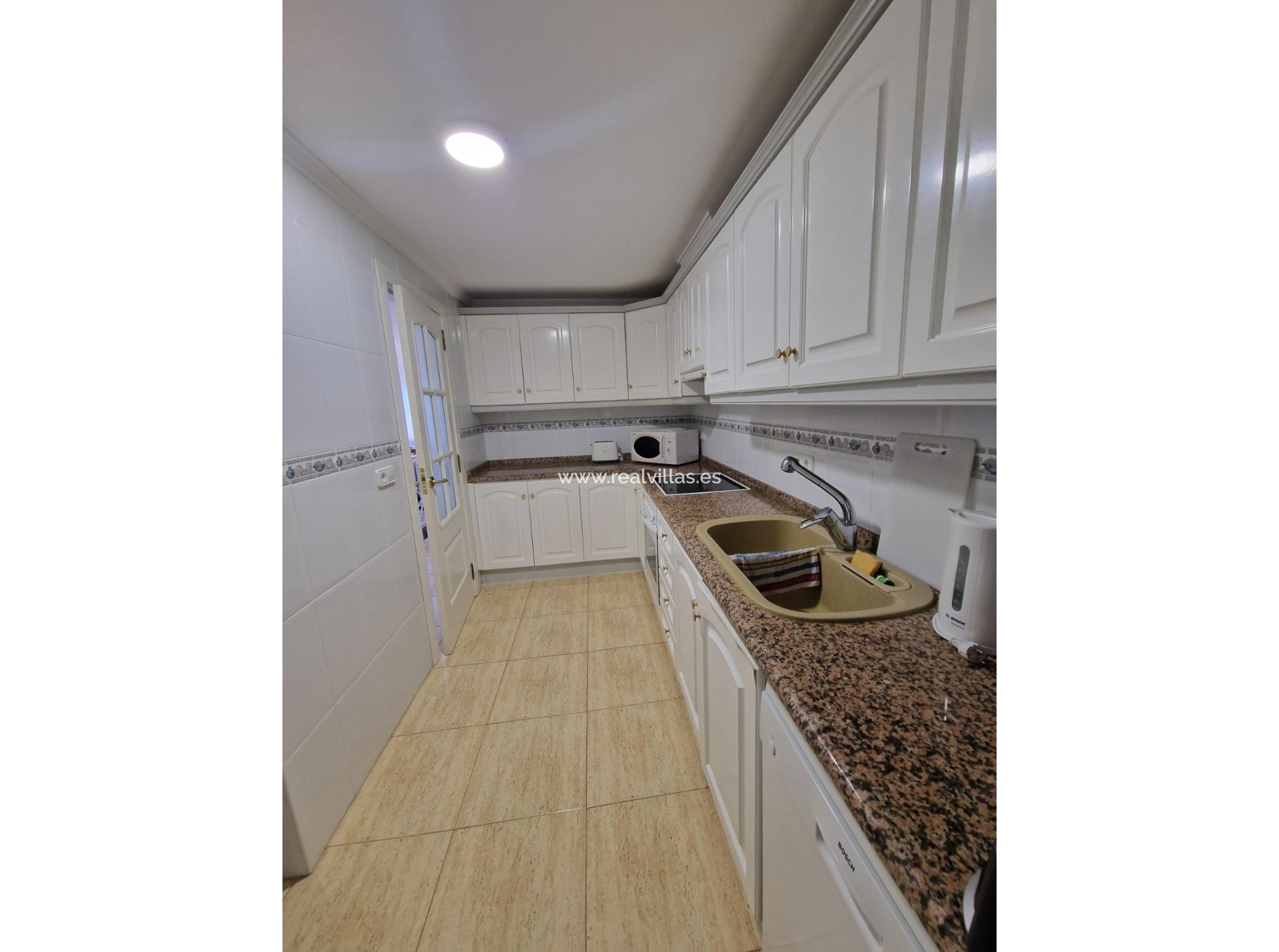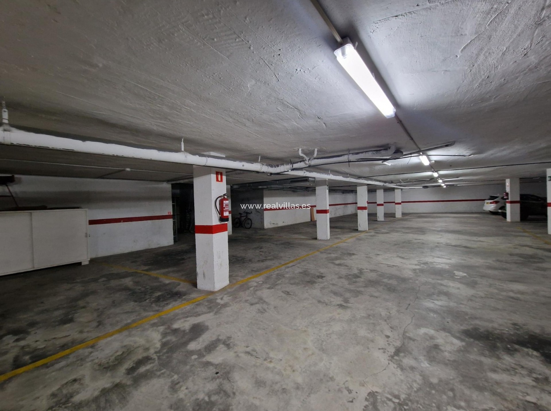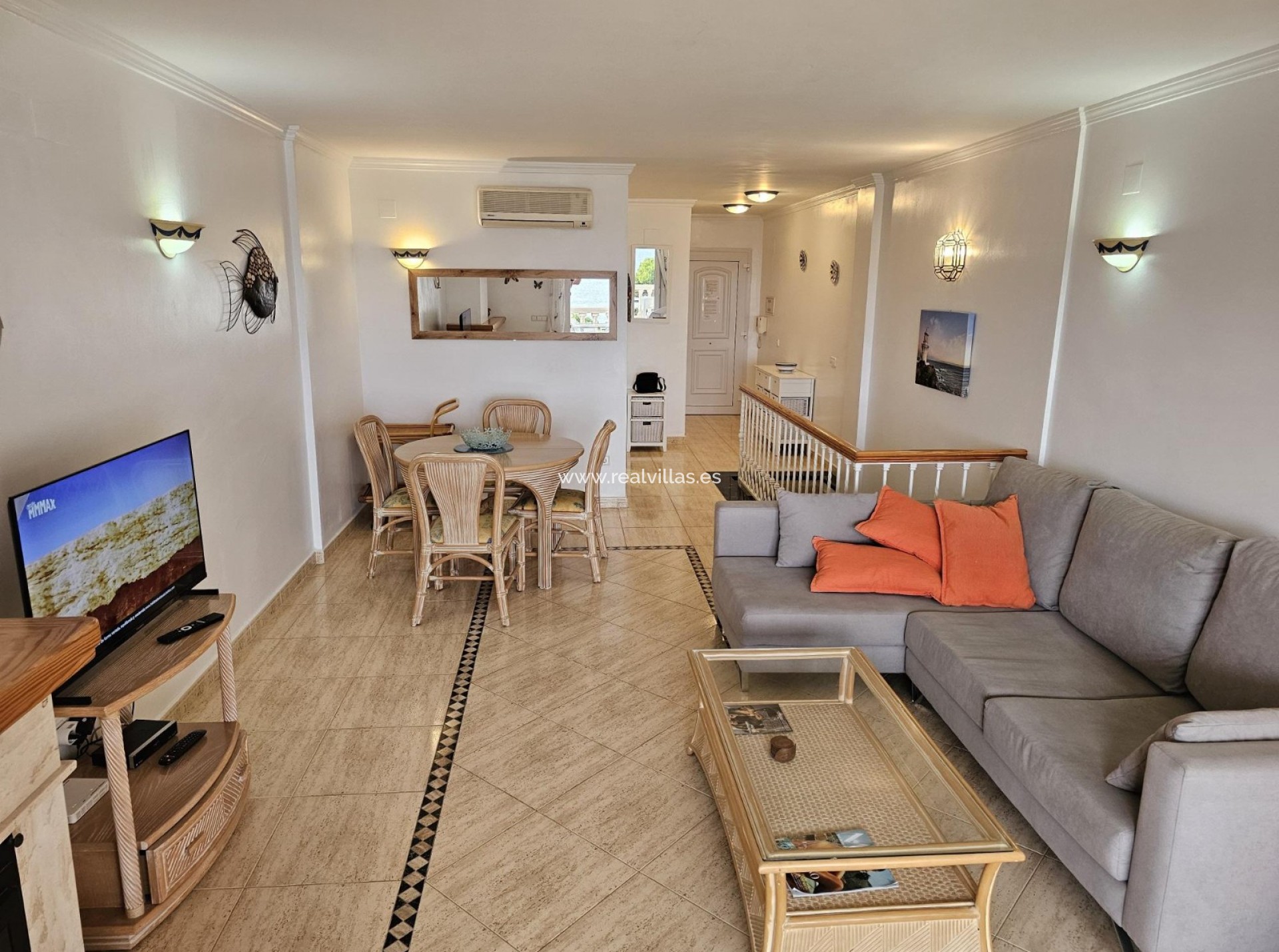 El apartamento incluye dos plazas de aparcamiento subterráneo y un trastero. La planta baja consta de recibidor, aseo de invitados, cocina independiente con lavadero y un amplio salón-comedor con salida a una terraza con vistas al mar y a la piscina comunitaria.