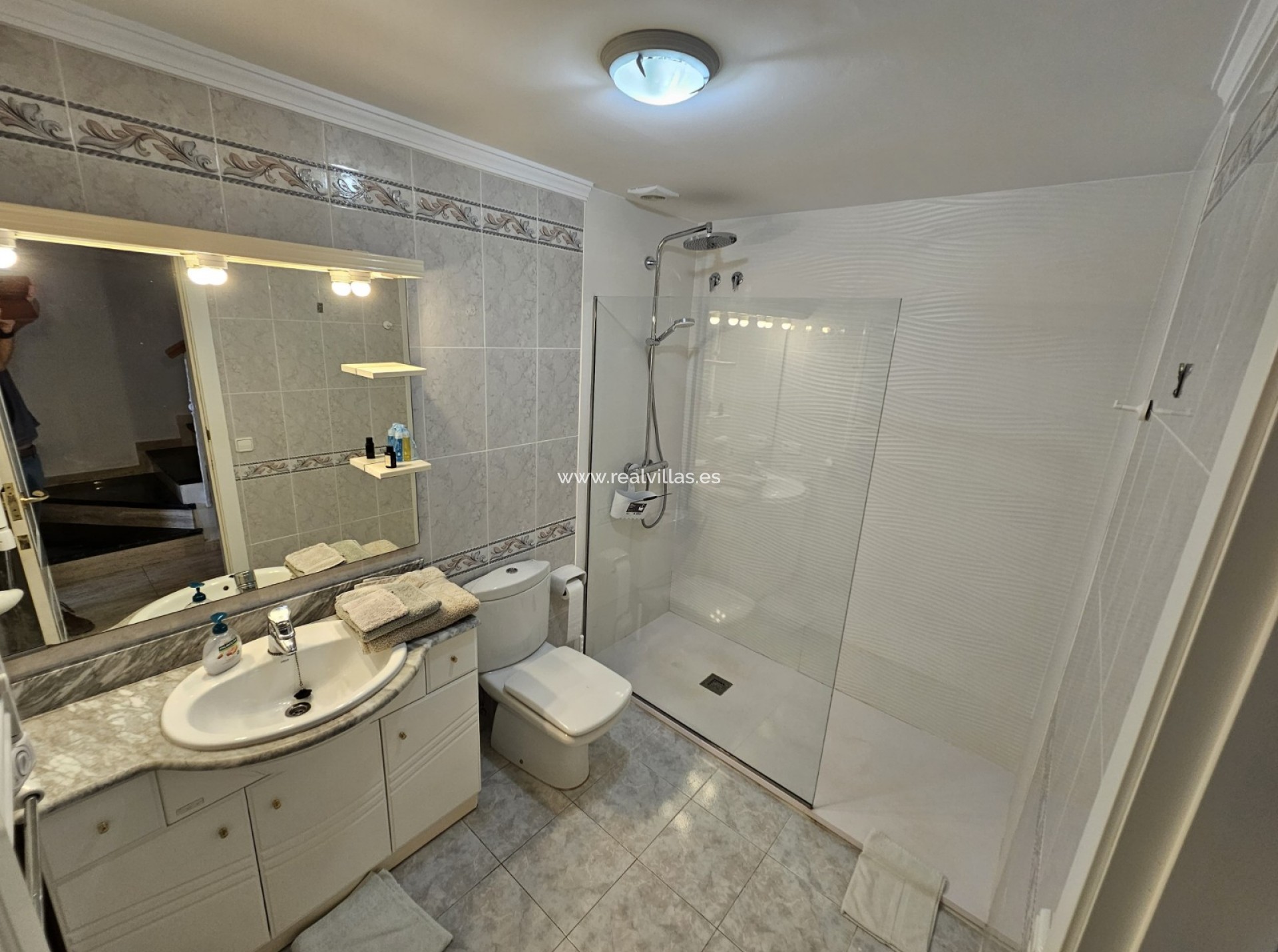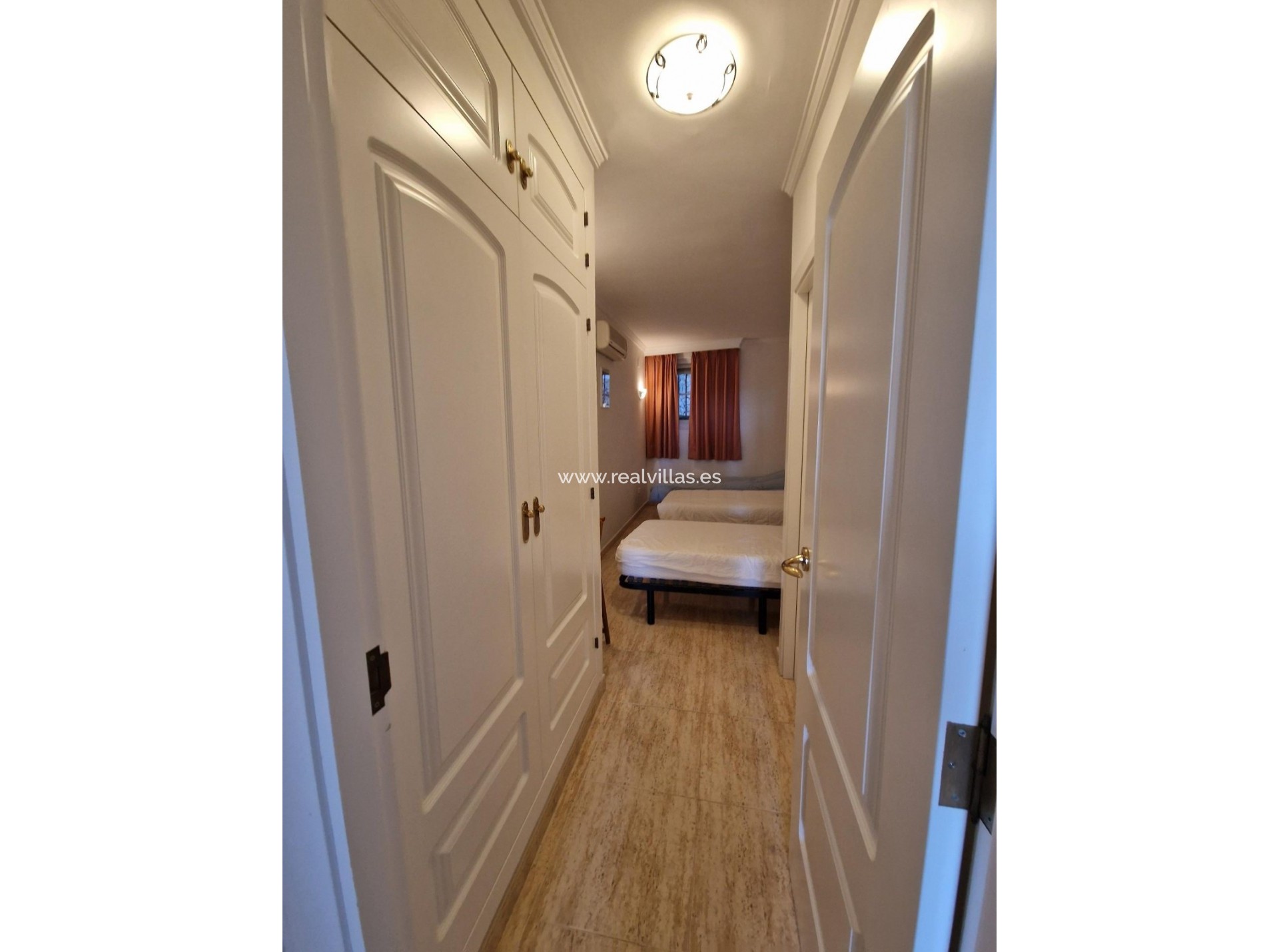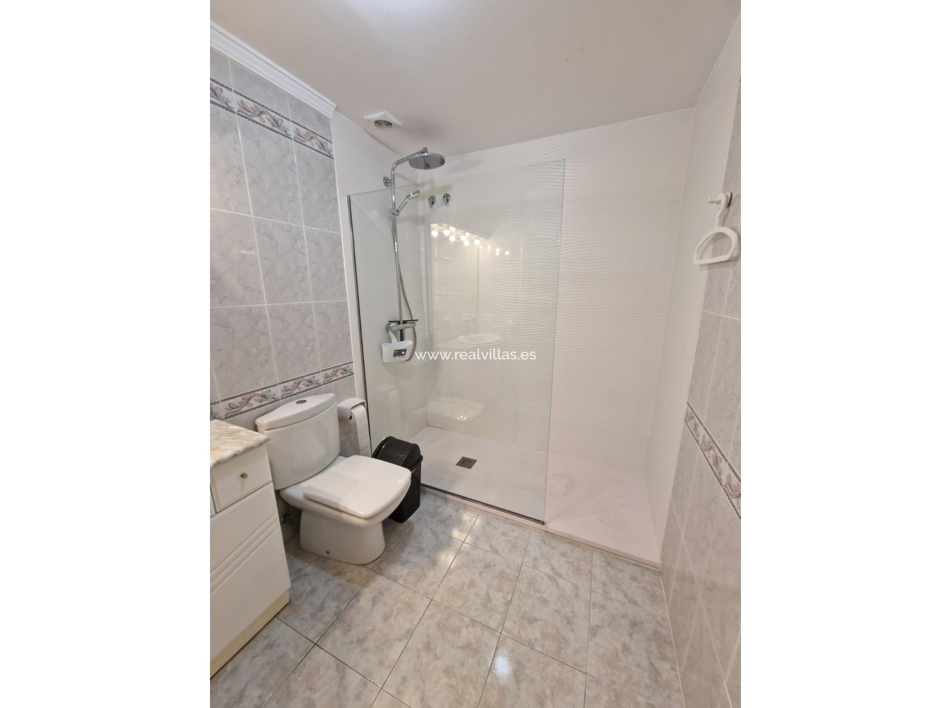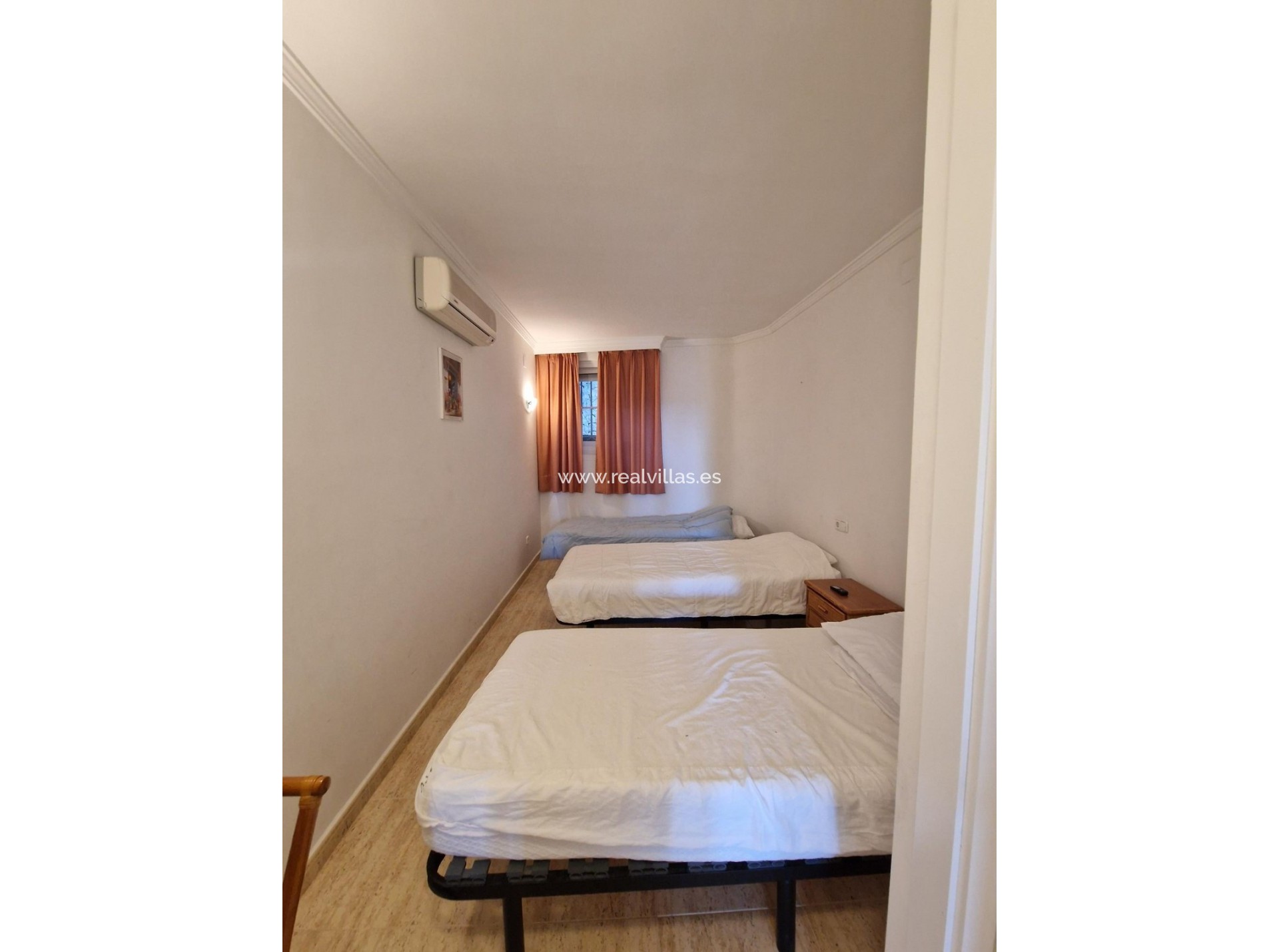 La planta baja consta de dos dormitorios dobles, uno de ellos con acceso a una terraza privada y a un jardín compartido, además de un baño con ducha. Está equipada con aire acondicionado reversible, ventanas de PVC con doble acristalamiento, persianas, videoportero y conexión a internet de alta velocidad.
