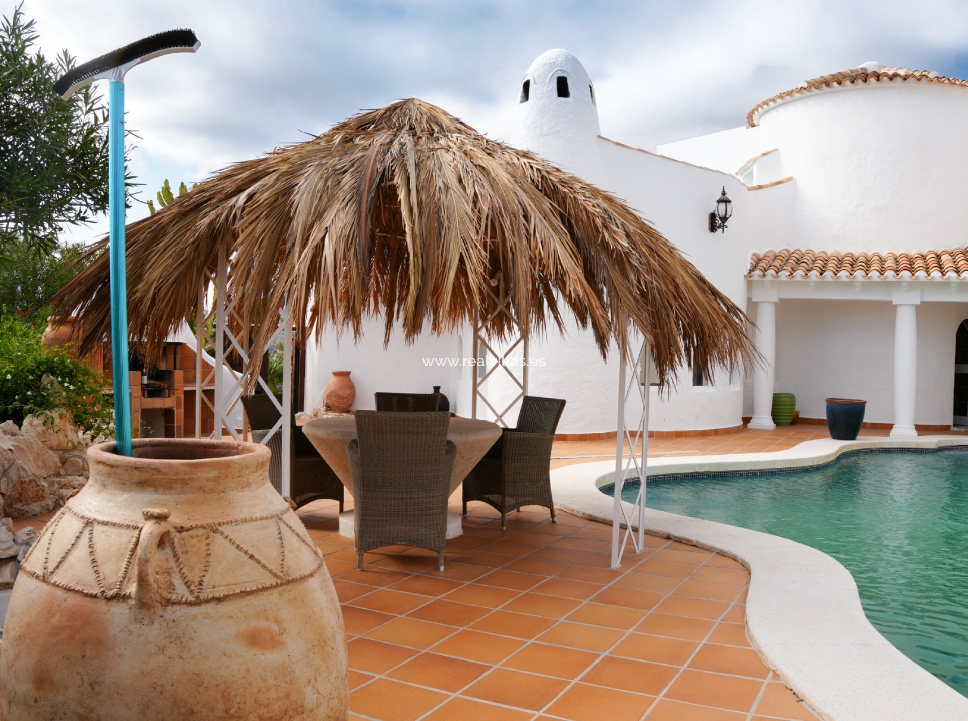 Located in the exclusive area of Altea la Vella, this Mediterranean-style villa combines charm, privacy, and comfort in a spectacular setting. The property sits on a spacious, private plot, surrounded by greenery and offering panoramic views of the sea and mountains. The villa boasts two separate pools, making it a unique and special residence. It also features a separate two-story apartment, with an open-plan bedroom on the ground floor and a living room with a kitchen and terrace upstairs, offering fantastic sea views. The main house also has two floors: the ground floor houses all the main rooms, while the upper floor is reserved for the master suite, with a private bathroom and a stunning terrace with spectacular views. Outside, the property offers spacious green areas and space for outdoor enjoyment, including a summer kitchen with a small poolside snack bar, ideal for gatherings with friends or family. This villa combines unique character, comfort, and a welcoming Mediterranean style, making it the perfect opportunity for those seeking an exclusive property in Altea la Vella.