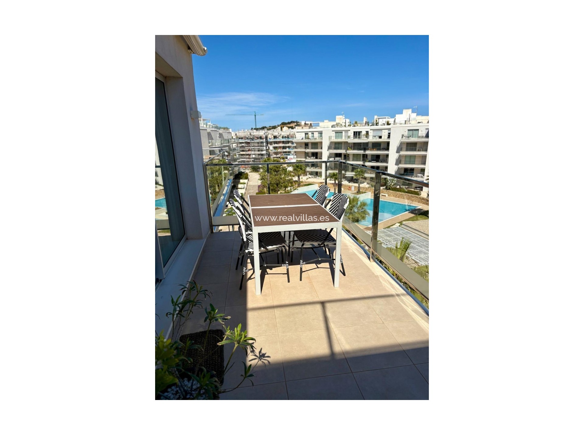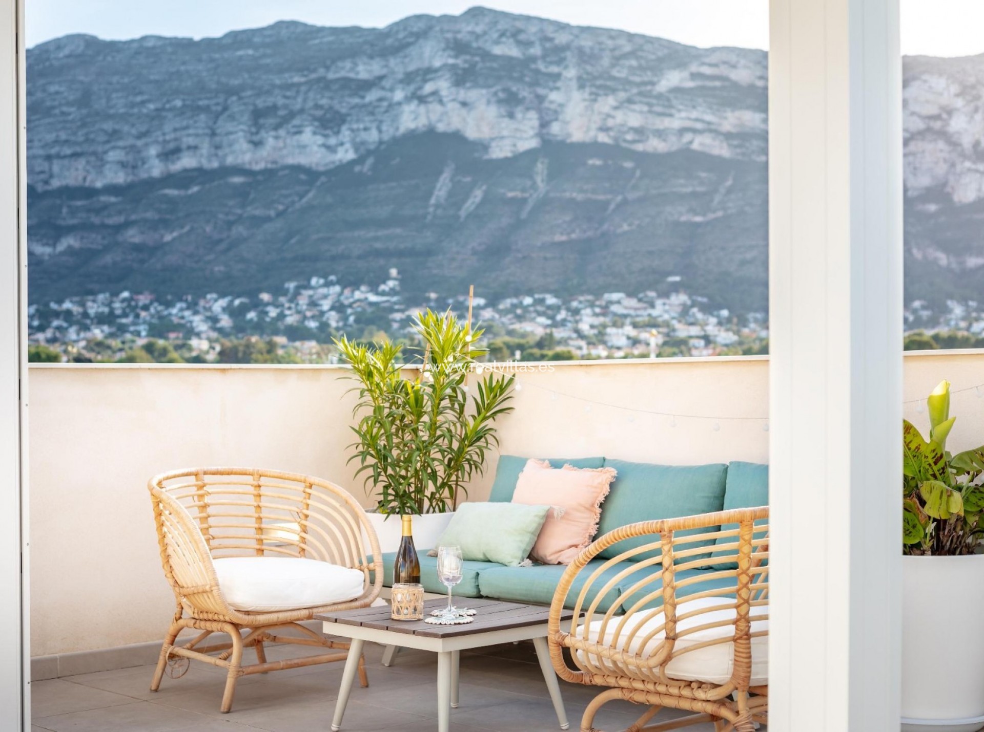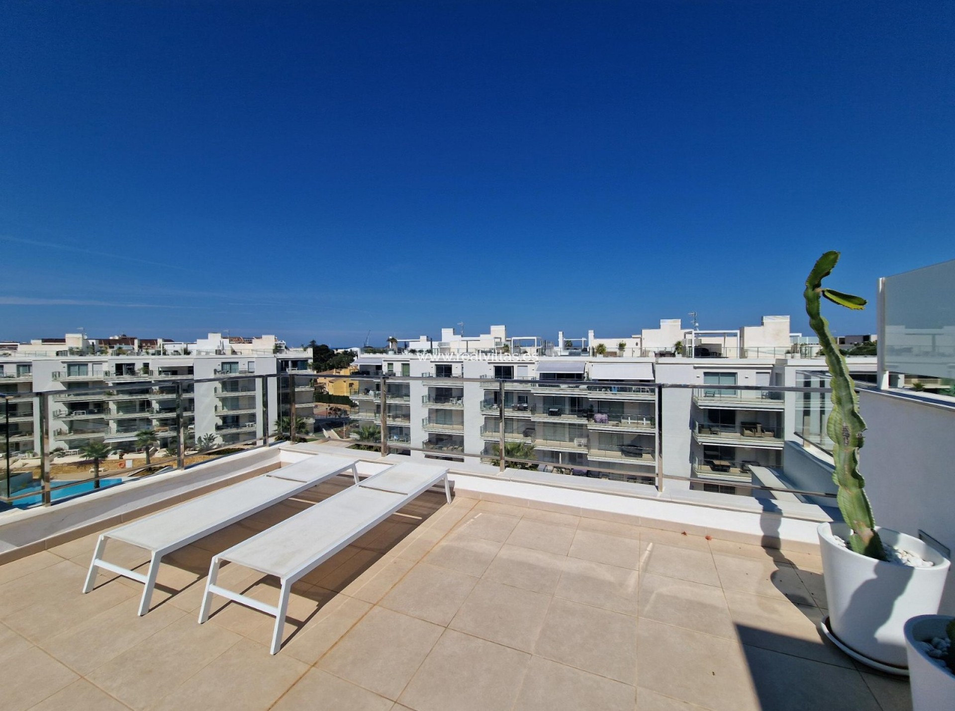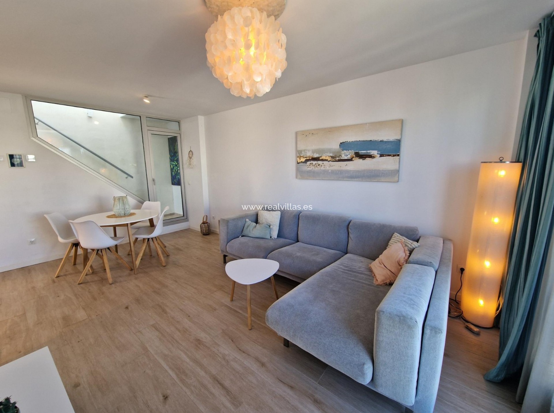 Penthouse in the prestigious Dénia Yacht Club area, boasting an impressive south-facing terrace with exceptional views of Montgó mountain. A privileged space for relaxing, sunbathing, or sharing unforgettable moments outdoors. The property features two bedrooms: a master bedroom with an en-suite bathroom and a second bedroom with a separate bathroom, ensuring privacy and comfort for its occupants. The modern semi-open kitchen is integrated into an open-plan layout that provides spaciousness, light, and a welcoming atmosphere. Furthermore, the property has a water filtration system throughout, adding a touch of quality and well-being to daily life. Among its amenities are ducted air conditioning and heating with an aerothermal system, guaranteeing comfort year-round. The residential complex offers a garden, communal swimming pool, and leisure areas, as well as a social club, gym, and concierge service, ideal for enjoying the Mediterranean lifestyle. The property also offers both an open and a covered terrace, adding great versatility to the outdoor spaces. It includes a parking space and storage room, providing convenience and extra storage space, as well as an elevator for easy access. It is equipped with internet access, double-glazed windows with blinds that improve energy efficiency and sound insulation, a security door, and a fenced plot. Located in a complex with good access and infrastructure, it is close to all amenities: bars, restaurants, a yacht club, diving and water sports areas, as well as health centers. An ideal property for those seeking to enjoy the Mediterranean lifestyle in a privileged setting, with all comforts within easy reach.