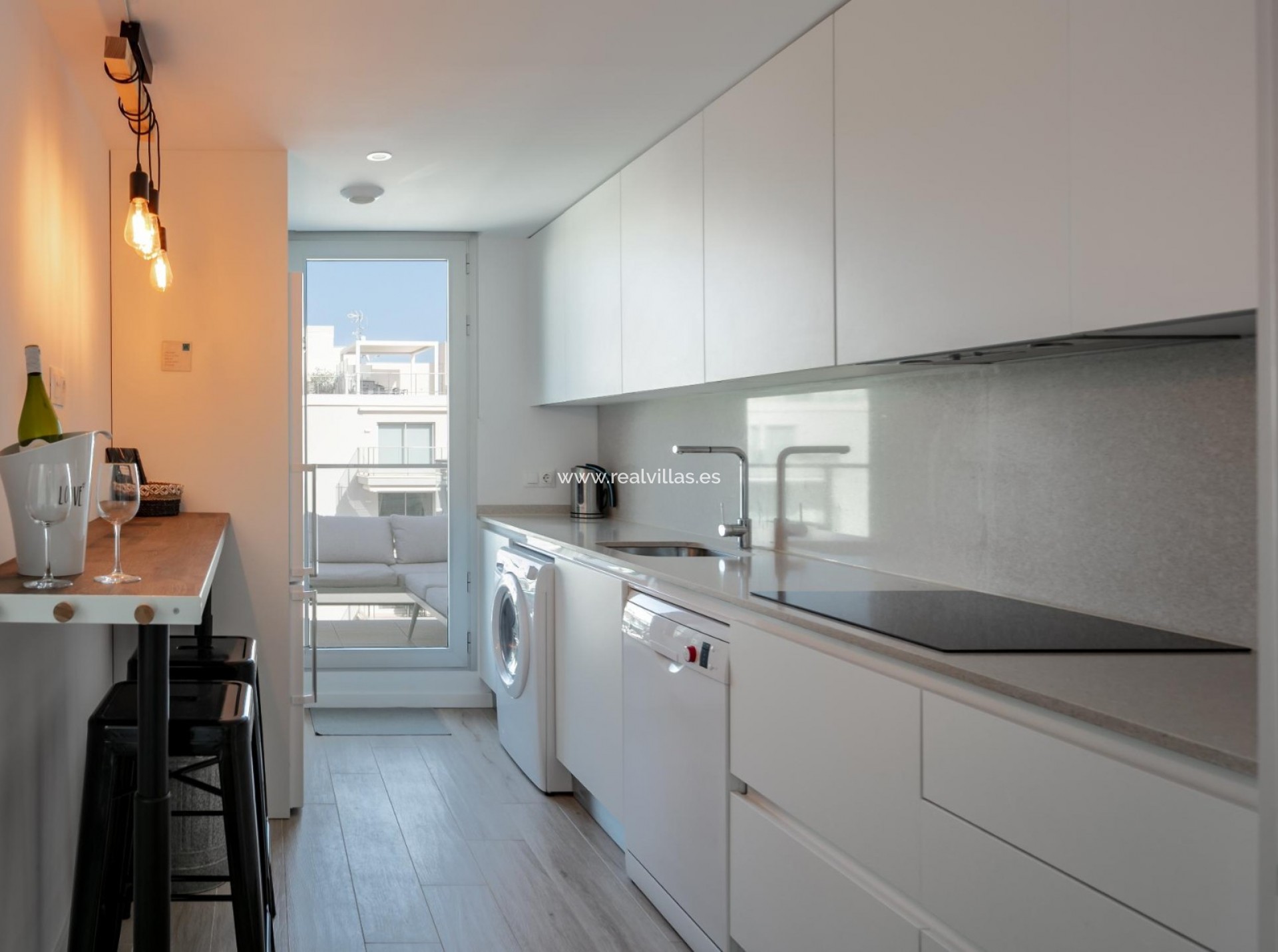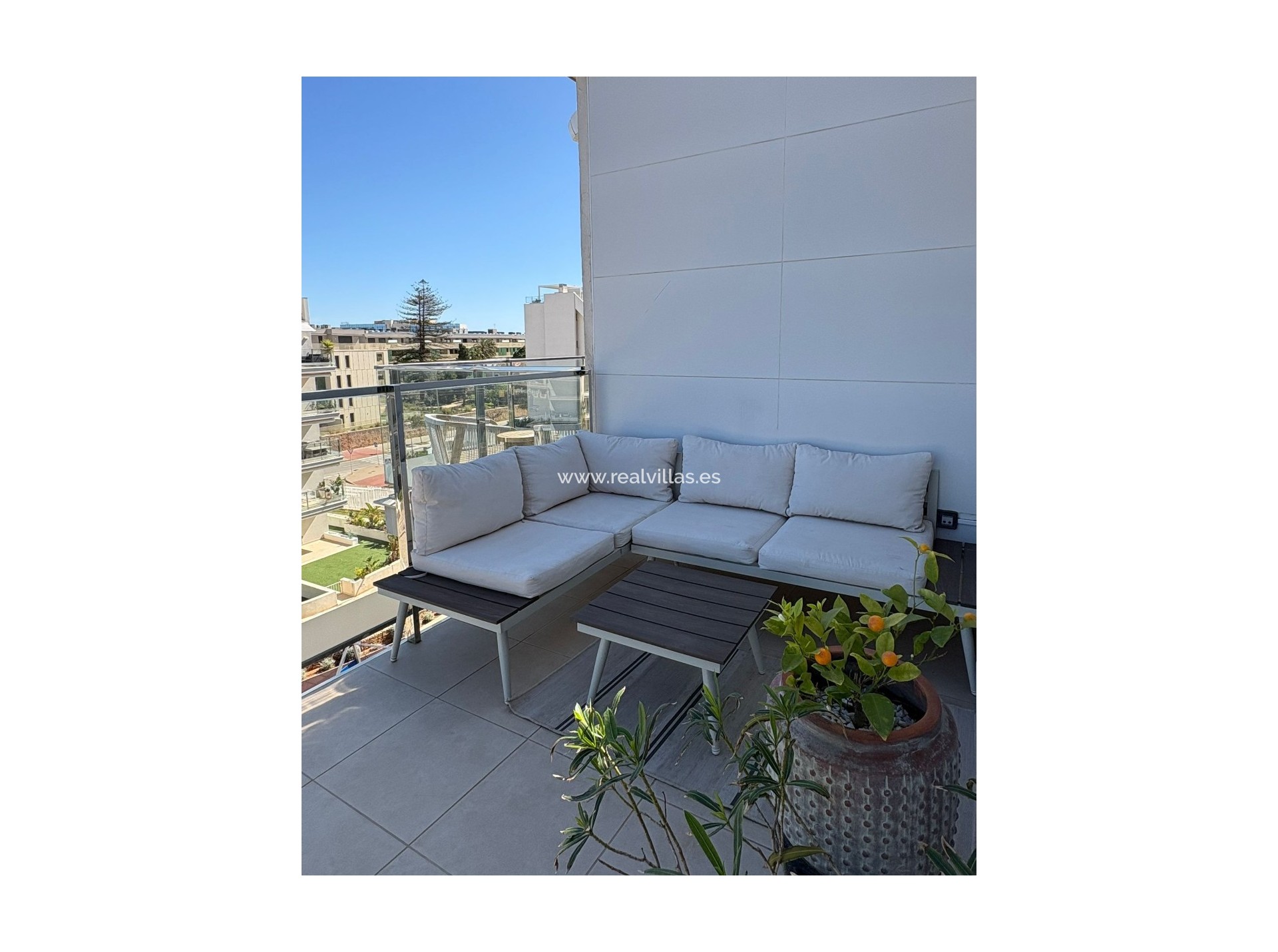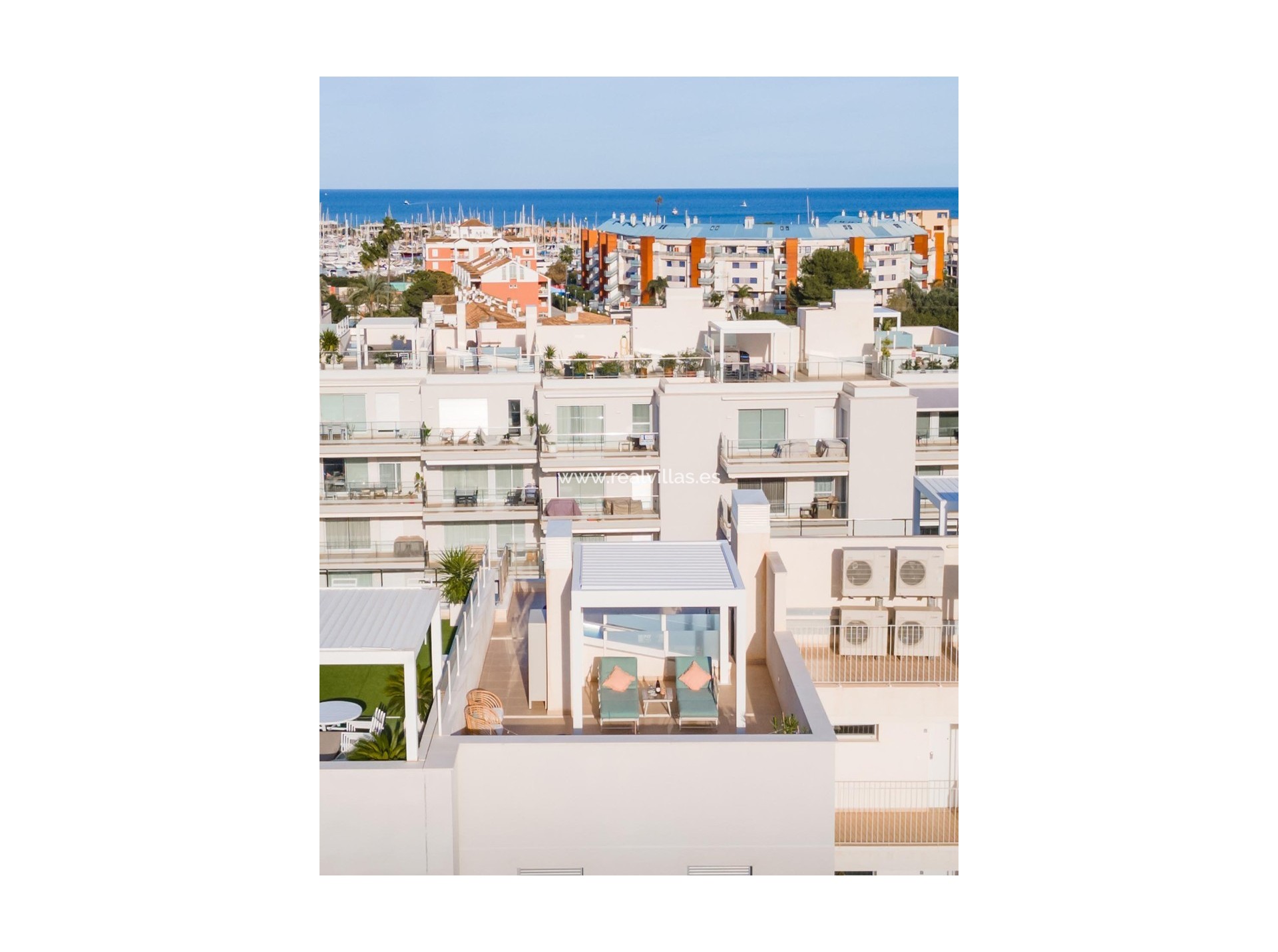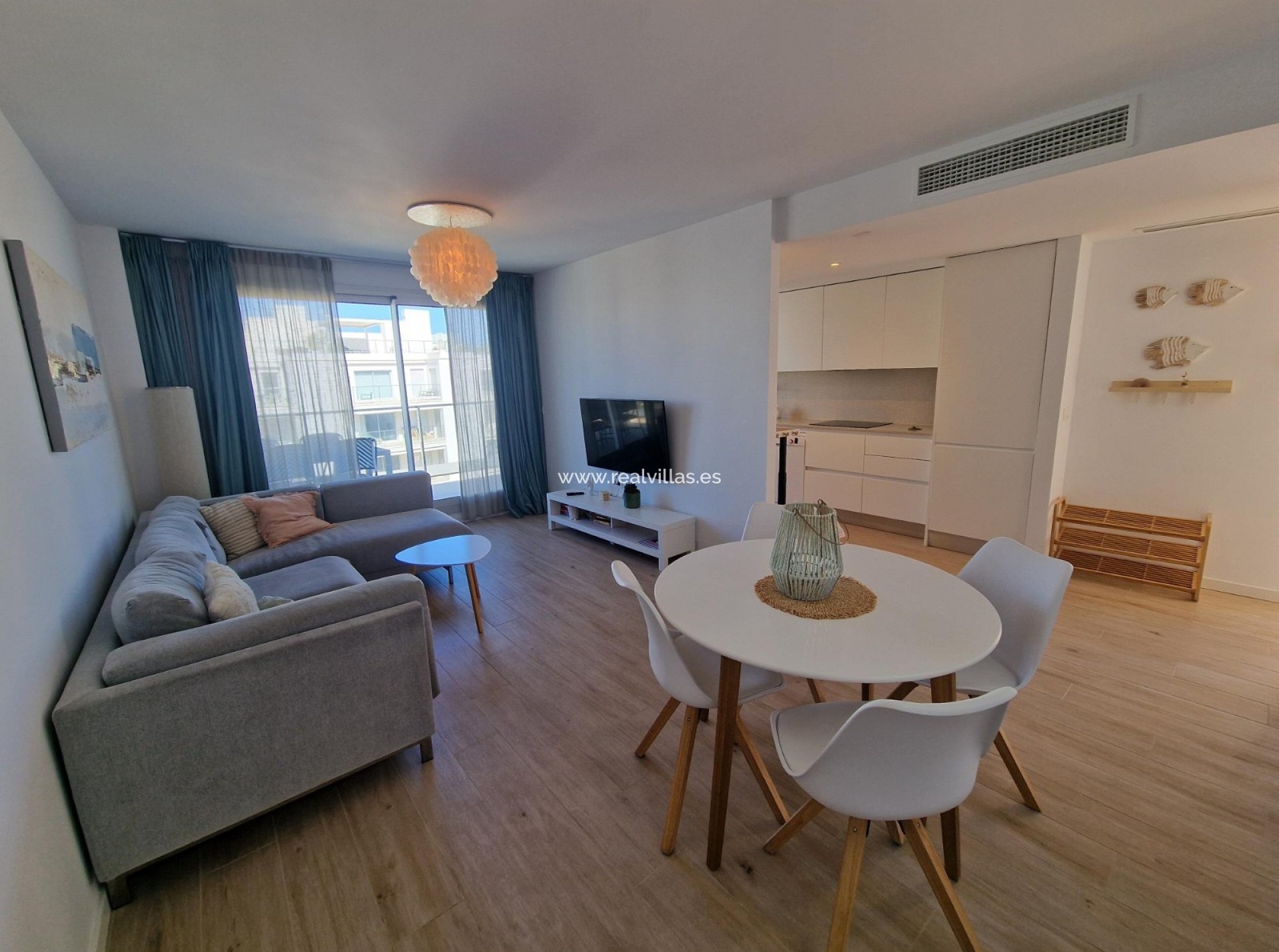 Penthouse in the prestigious Dénia Yacht Club area, boasting an impressive south-facing terrace with exceptional views of Montgó mountain. A privileged space for relaxing, sunbathing, or sharing unforgettable moments outdoors. The property features two bedrooms: a master bedroom with an en-suite bathroom and a second bedroom with a separate bathroom, ensuring privacy and comfort for its occupants. The modern semi-open kitchen is integrated into an open-plan layout that provides spaciousness, light, and a welcoming atmosphere. Furthermore, the property has a water filtration system throughout, adding a touch of quality and well-being to daily life. Among its amenities are ducted air conditioning and heating with an aerothermal system, guaranteeing comfort year-round. The residential complex offers a garden, communal swimming pool, and leisure areas, as well as a social club, gym, and concierge service, ideal for enjoying the Mediterranean lifestyle. The property also offers both an open and a covered terrace, adding great versatility to the outdoor spaces. It includes a parking space and storage room, providing convenience and extra storage space, as well as an elevator for easy access. It is equipped with internet access, double-glazed windows with blinds that improve energy efficiency and sound insulation, a security door, and a fenced plot. Located in a complex with good access and infrastructure, it is close to all amenities: bars, restaurants, a yacht club, diving and water sports areas, as well as health centers. An ideal property for those seeking to enjoy the Mediterranean lifestyle in a privileged setting, with all comforts within easy reach.
